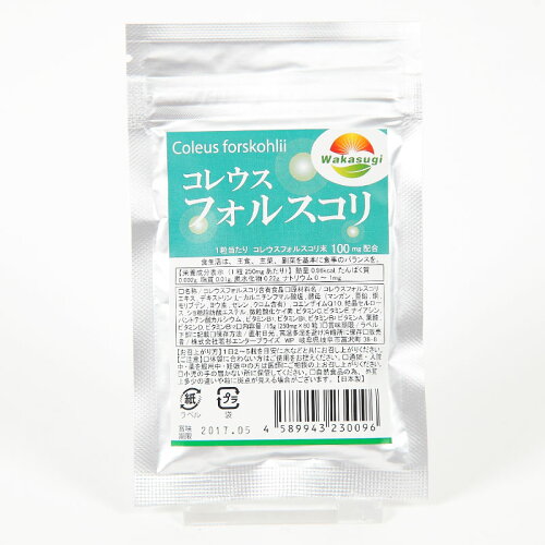 コレウスフォルスコリ 60粒 商品名 コレウスフォルスコリ 名称 コレウスフォルスコリ含有食品 内容量 15g (250mg×60粒)1袋あたり 栄養成分表示 (1粒250mgあたり) 熱量0.96kcal、たんぱく質0.002g、脂質0.01g、炭水化物0.22g、ナトリウム0〜1mg 原材料 コレウスフォルスコリエキス,デキストリン,L-カルニチンフマル酸塩,酵母(マンガン,亜鉛,銅,モリブデン,ヨウ素,セレン,クロム含有),コエンザイムQ10,結晶セルロース,ショ糖脂肪酸エステル,微粒酸化ケイ素,ビタミンC,ビタミンE,ナイアシン,パントテン酸カルシウム,ビタミンB1,ビタミンB6,ビタミンB2ビタミンA,葉酸,ビタミンD,ビタミンB12 お召し上がり方 1日2粒を目安にお水などでお召し上がりください。