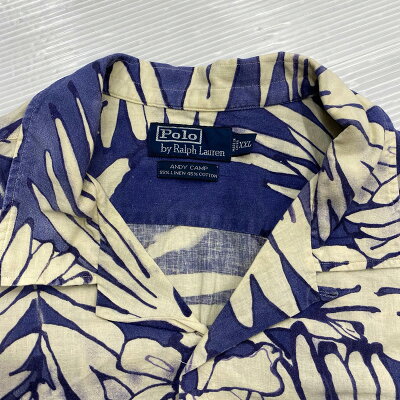 ポロ ラルフローレン Polo by Ralph Lauren リネン×コットン アロハ シャツ 半袖 ボタニカル柄 総柄 サイズ:XXL ブルー系×ホワイト系【ANDY CAMP】【古着】 古着 【中古】 中古 mellow 【あす楽対応】【古着屋mellow楽天市場店】