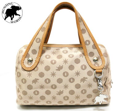 【HUNTING WORLD】ハンティングワールド モノグラム アルディ ミニボストンバッグ ベージュ ハンドバッグ 【中古】