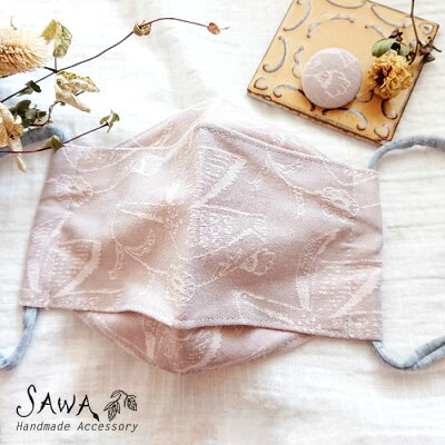 【ピンク】【ベージュ】 【あす楽_土曜営業】 【あす楽_日曜営業】 【あす楽_年中無休】【コンビニ受取対応商品】【W】【SAWA サワ】播州織り merinomi 「ワタリドリ」 マスク + ブローチ セット 【SAWA サワ】より、 模様の雑貨merinomiさんの 播州織りオリジナル生地「ワタリドリ」を使った マスク(ピンク色)+おそろい生地のブローチのセットです。