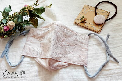 【ピンク】【ベージュ】 【あす楽_土曜営業】 【あす楽_日曜営業】 【あす楽_年中無休】【コンビニ受取対応商品】【W】【SAWA サワ】播州織り merinomi 「ワタリドリ」 マスク + ヘアゴム セット 【SAWA サワ】より、 模様の雑貨merinomiさんの 播州織りオリジナル生地「ワタリドリ」を使った マスク(ピンク色)+おそろい生地のヘアゴムのセットです。