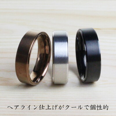 ヘアライン ファッションリング アレルギーフリー ステンレスリング 名入れ刻印無料 クール かっこいい メンズ レディース ペアリング チョコレート 金属アレルギー対応 誕生日 クリスマス 記念日 プレゼント ブラック ブラウン シルバー 大きいサイズ R1033