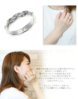 ペアリング メンズ レディース シルバーリング ひし形格子 デザインリング サージカルステンレス 金属アレルギー 安心 対応 おそろい ダイヤモンド 送料無料 秋冬 大人気 文字刻印無料